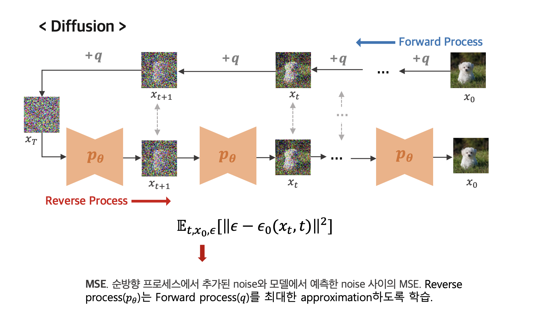 DDPM의 목표도 VAE와 동일하게 input과 다른 이미지 데이터를 생성하는 것이다.