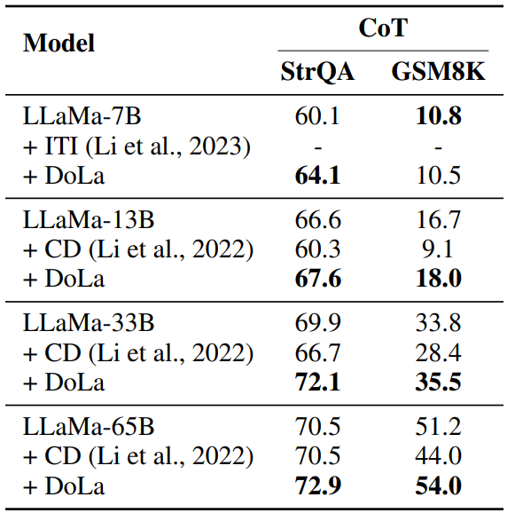 반면 DoLa는 약 1 ~ 3 % 가량 acc가 더 높음.
