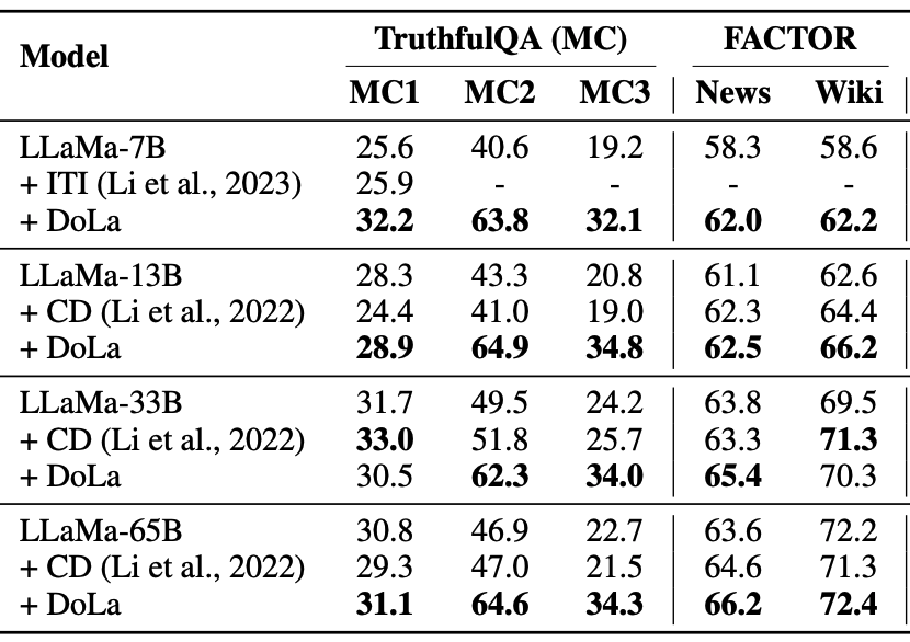 DoLa는 Information Retrieval 또는 Model Fine-tuning 없이 다양한 Task에서 Truthfulness를 향상시킨 방법론이다.