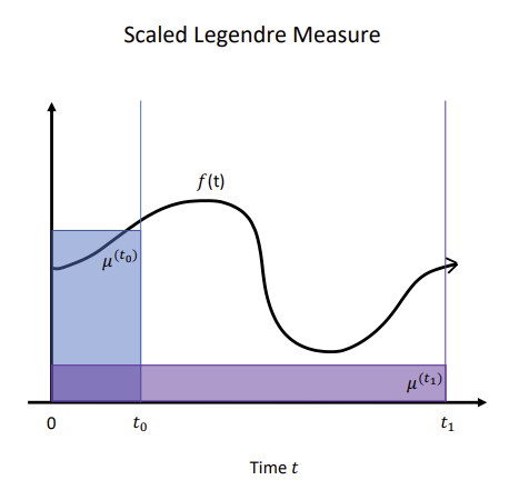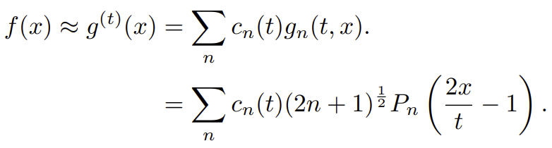HiPPO는 를 고차 다항함수의 합으로 표현하고자 한다. 를N-1차 다항함수를 N개 를 미리 정의한 후, 이 함수들을 조합하여 를 근사한다. 그리고 이 선형 결합의 계수 를 구한다. 이를
