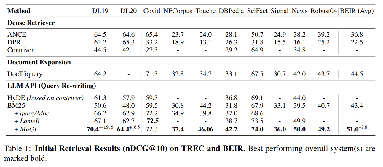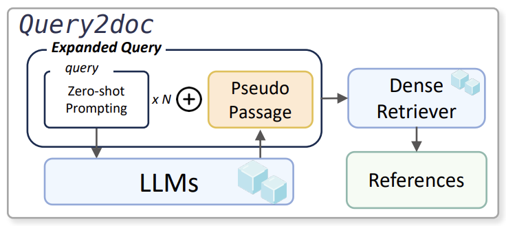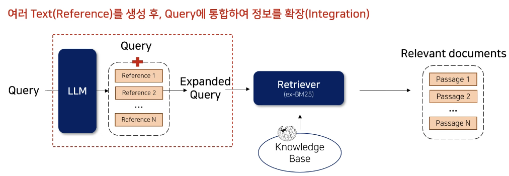 | Query2doc | 5 (Few-shot) | 1 | Sparse or Dense | Sparse (Query N번) Dense (단순 concat) |