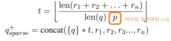 - Sparse Retrieval에서 Adaptive Repetition Ratio t를 적용하여 Query의 길이를 가변적으로 변경함.