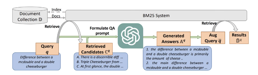 3. Retrieve: 가상의 N개의 Answer를 Query와 Concat후, BM25로 Retrieval 진행(1000개 추출)