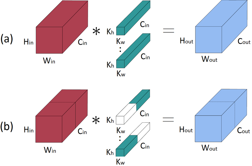 (a)가 기존의 convolution이고 (b)가 grouped convolution이다.