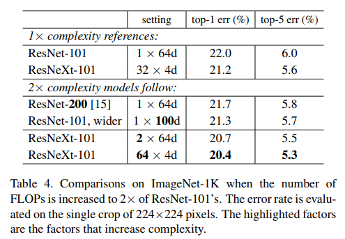 성능면에서 ResNet-200 < ResNet-101, wider < ResNeXt-101의 순서를 보이고 있다는 것을 보여준다.