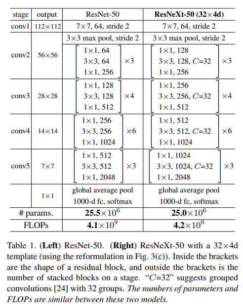 이 그림을 보면 ResNeXt는 resnet + grouped convolution이라는 것을 알 수 있다.