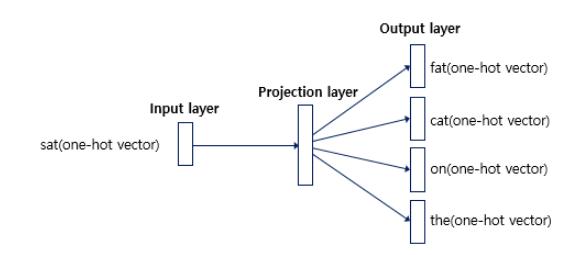 CBOW와 다르게 input으로 하나의 단어만 사용되기 때문에 더하거나 평균을 구하는 과정이 없습니다.