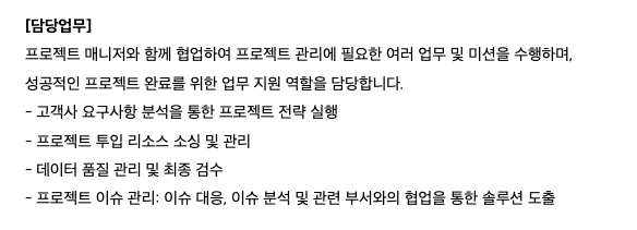 회사의 규모에 따라 다르지만 인턴 또는 신입의 경우에는 투입 리소스 소싱 및 관리와 데이터 품질 관리를 하게 될 가능성이 크다.