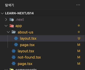다른 페이지에서는 보이지 않고 루트 경로에 있는 레이아웃과 중첩되어 보여짐