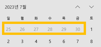 그리고 달력을 주 단위로 만들었기 때문에 이번달이 아니더라도 같은 주에 속해있으면