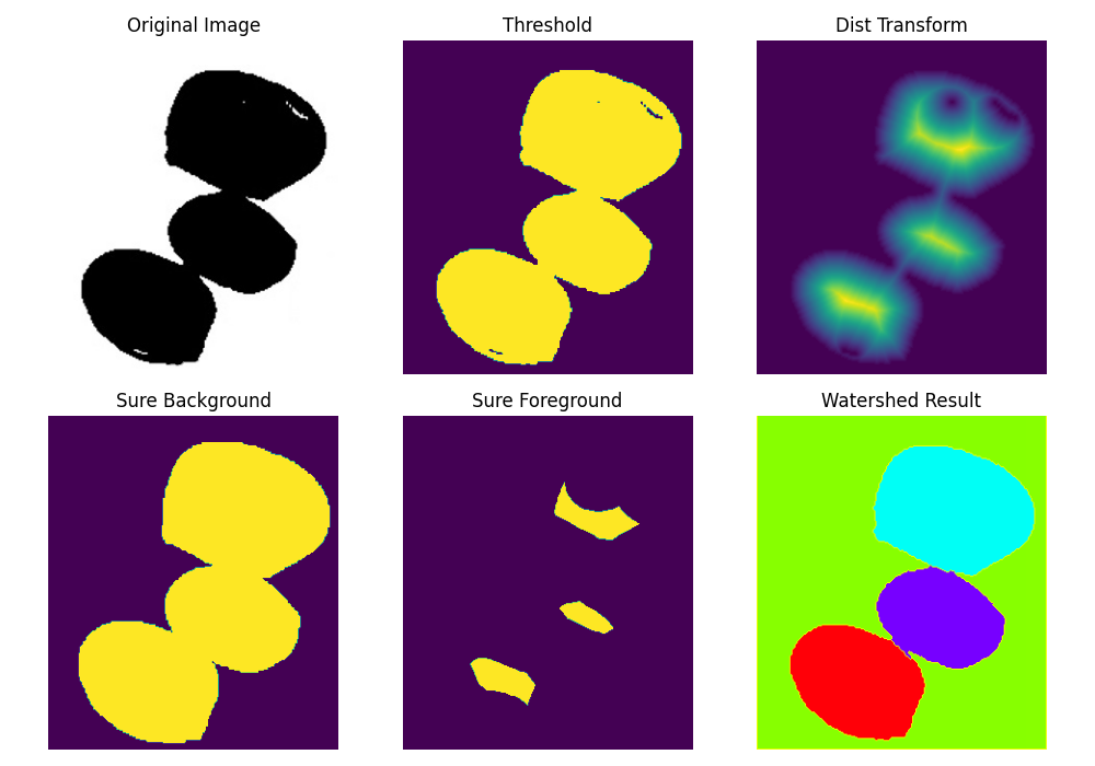 contours, _ = cv2.findContours(sure_fg, cv2.RETR_EXTERNAL, cv2.CHAIN_APPROX_SIMPLE)