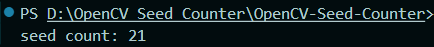 cv2.putText(result_image, f"seed count: {contour_count}", (10, 30), font, 1, (0, 0, 255), 2)