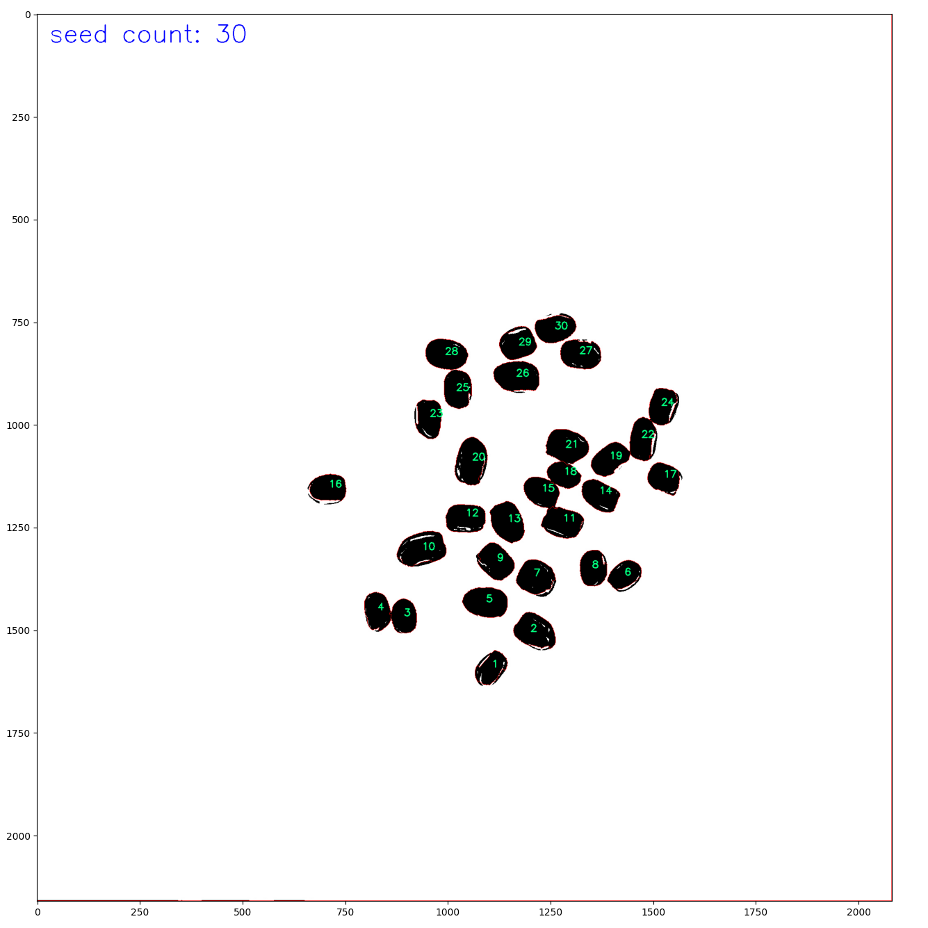 cv2.putText(image, f"seed count: {len(contours)}", (30, 70), IS.font, 2, (0, 0, 255), 2)