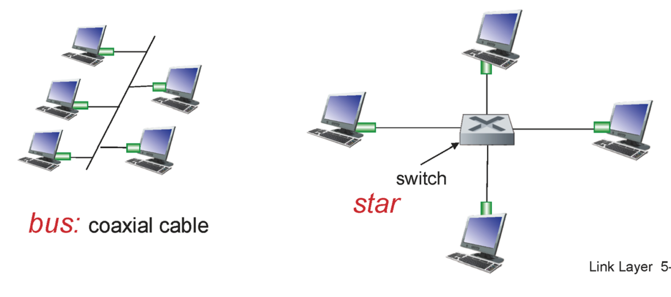- bus: 같은 collision domain에 모든 node들이 모여있는 것이다.