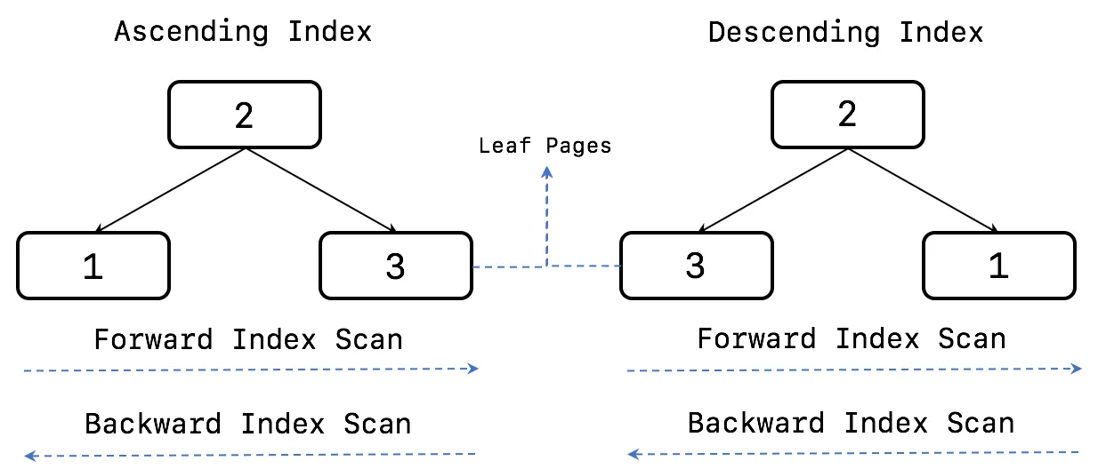 하지만 내림차순 접근도 가능한데, 이 경우에는 인덱스를 역순으로 스캔하여 데이터를 가져온다.