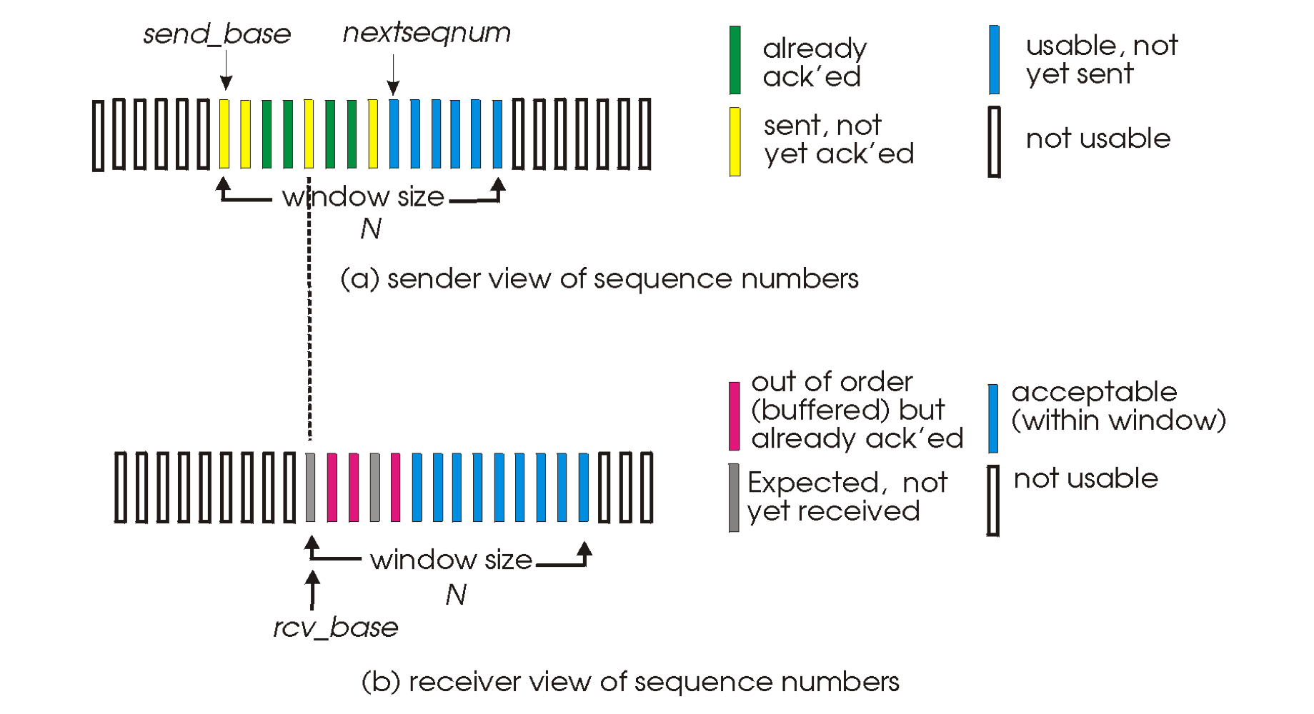 - 결론적으로 window size는 sequence number의 절반의 이하가 되어야 한다.