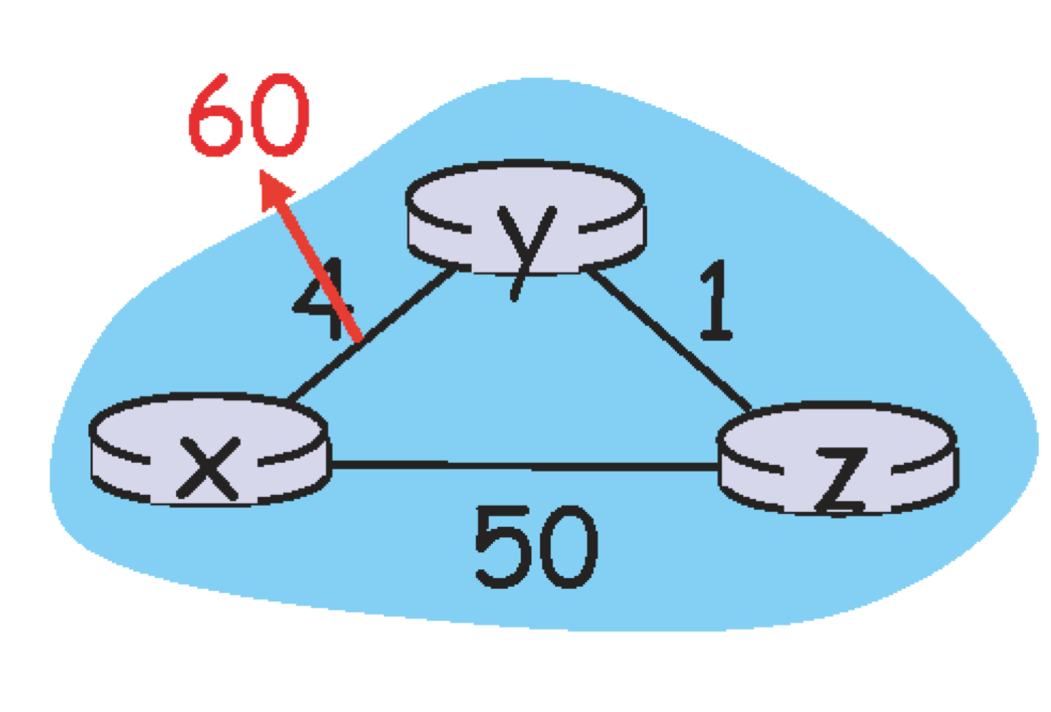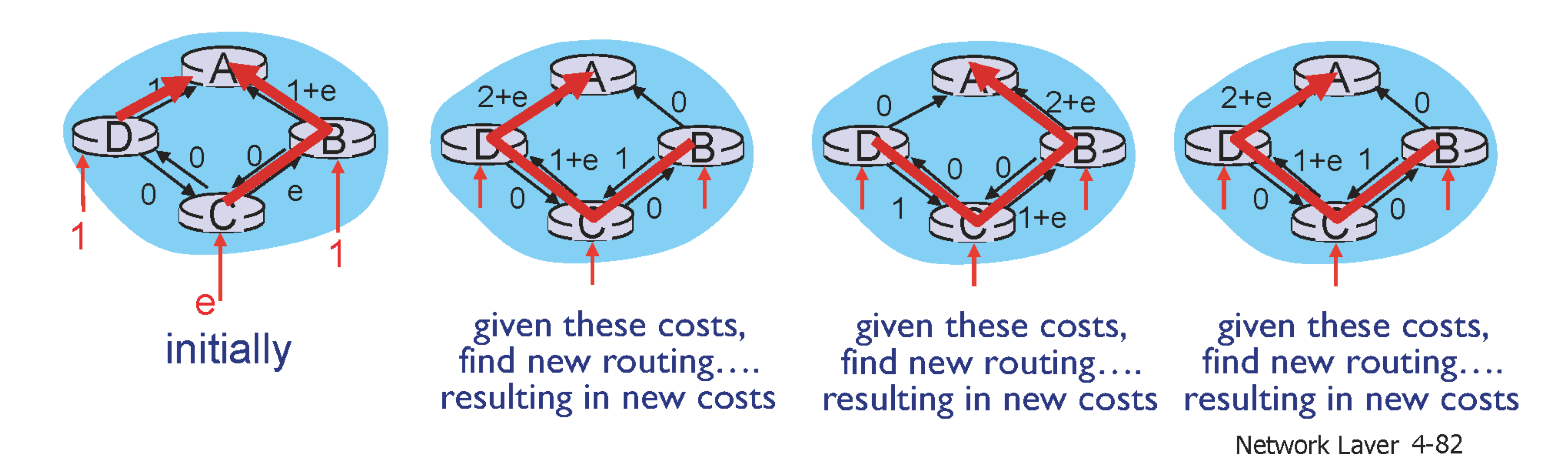 - 링크 비용이 link cost가 변화함에 따른 전파속도 차이가 존재한다.