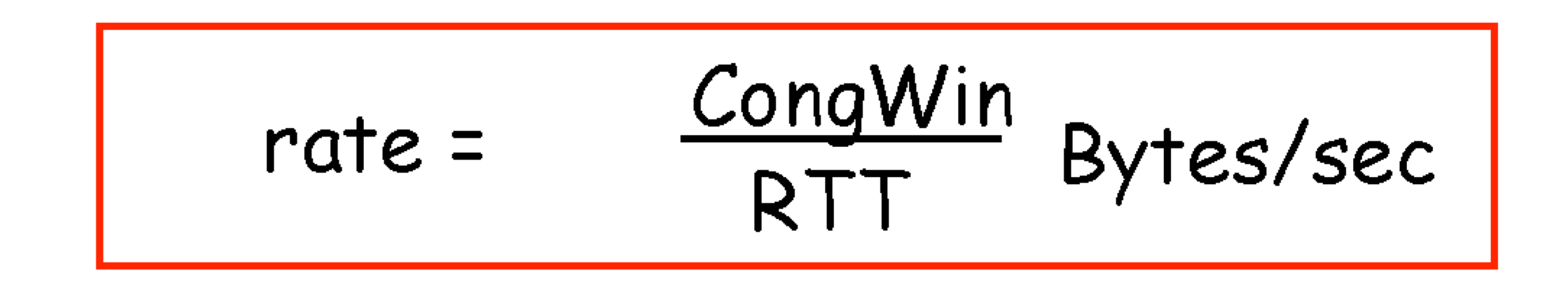 이때, RTT는 네트워크에 따라서 결정되는 값이기에, CongWin을 조절해야 한다.