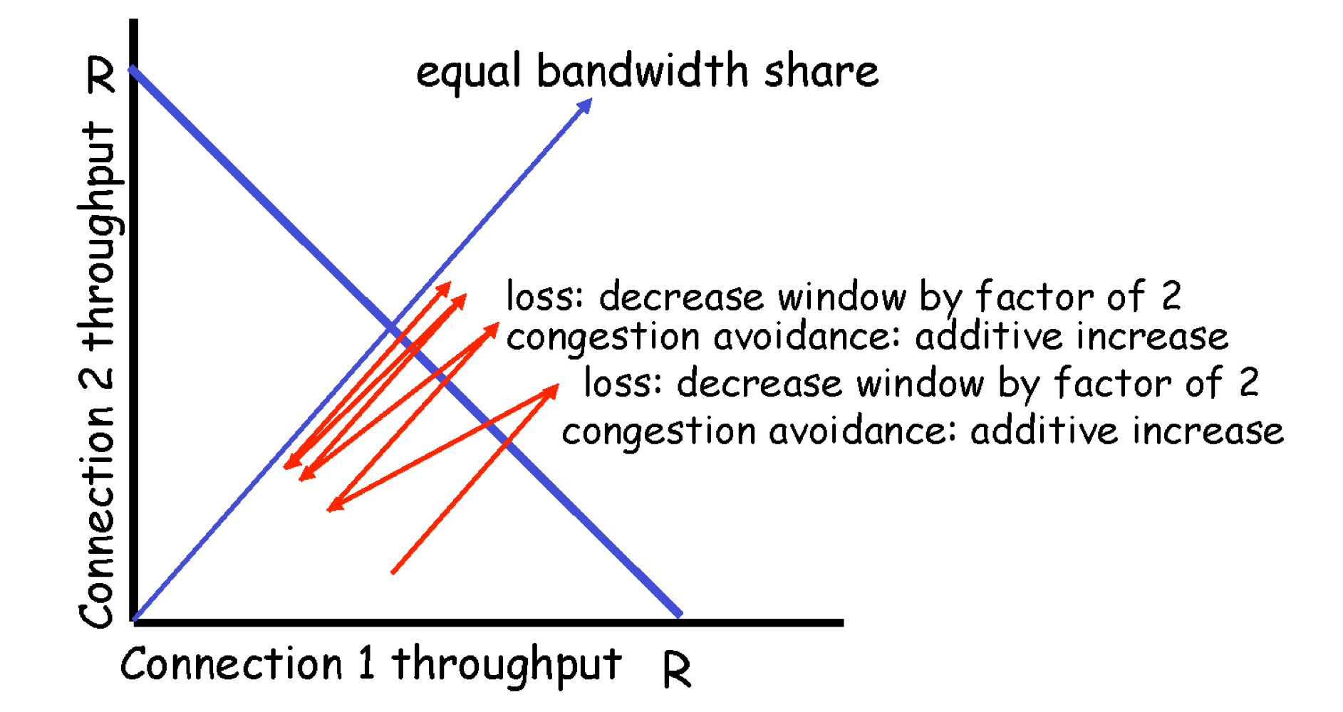 여러개의 TCP들이 같은 자원을 사용하면 R/M만큼 공평하게 나누어지는지에 관한 논의이다.
