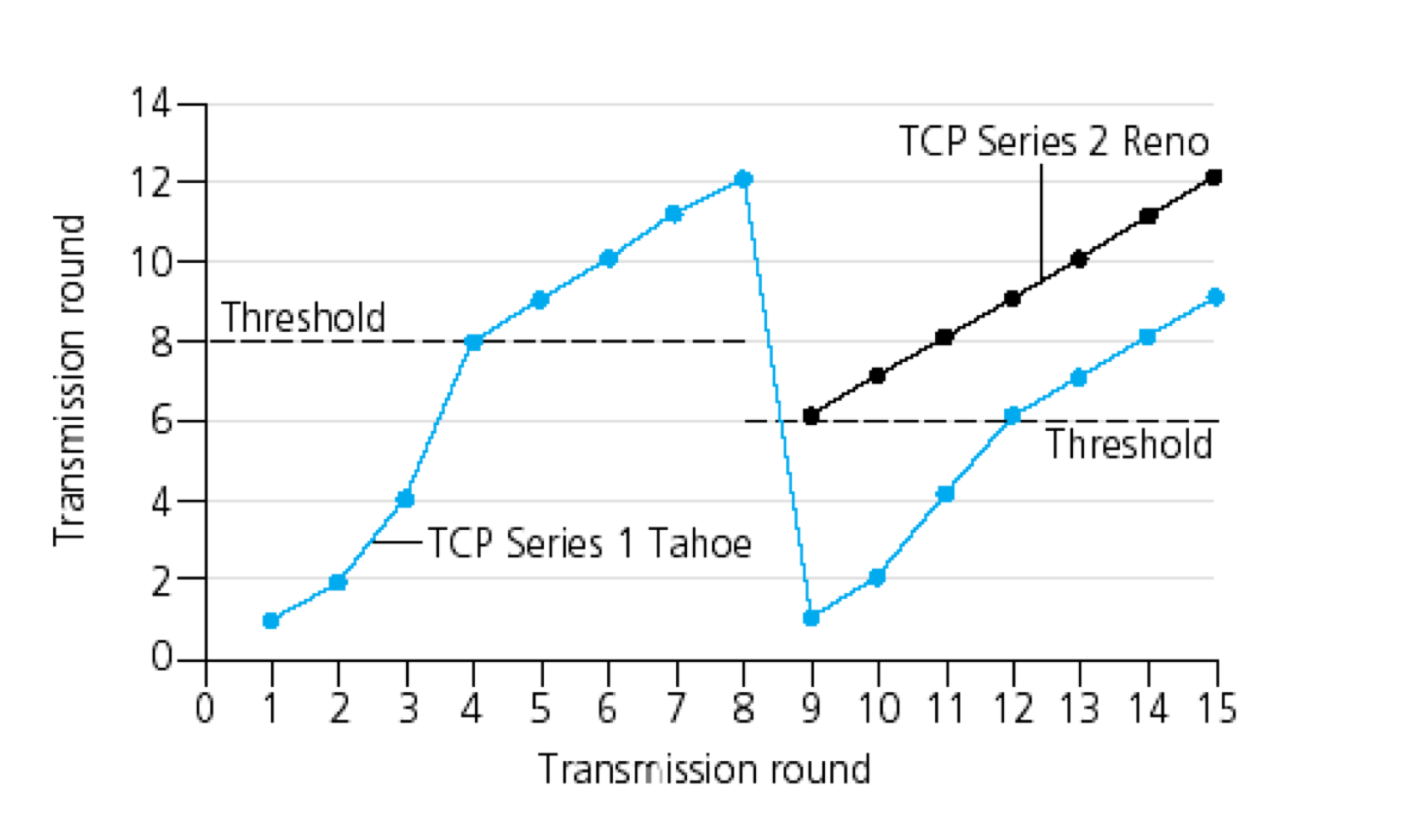두 버전 모두 Additive increase까지는 과정이 똑같으나, Multiplicative decrease가 조금 다르다.