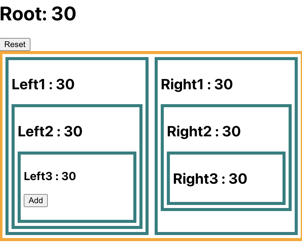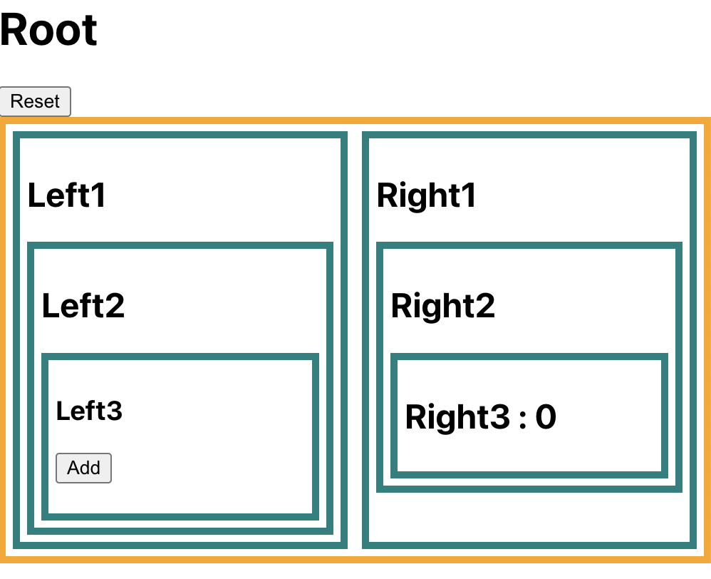 ADD 버튼을 누르면 Right3의 숫자가 늘어나고, Reset을 누르면 0으로 초기화 된다.