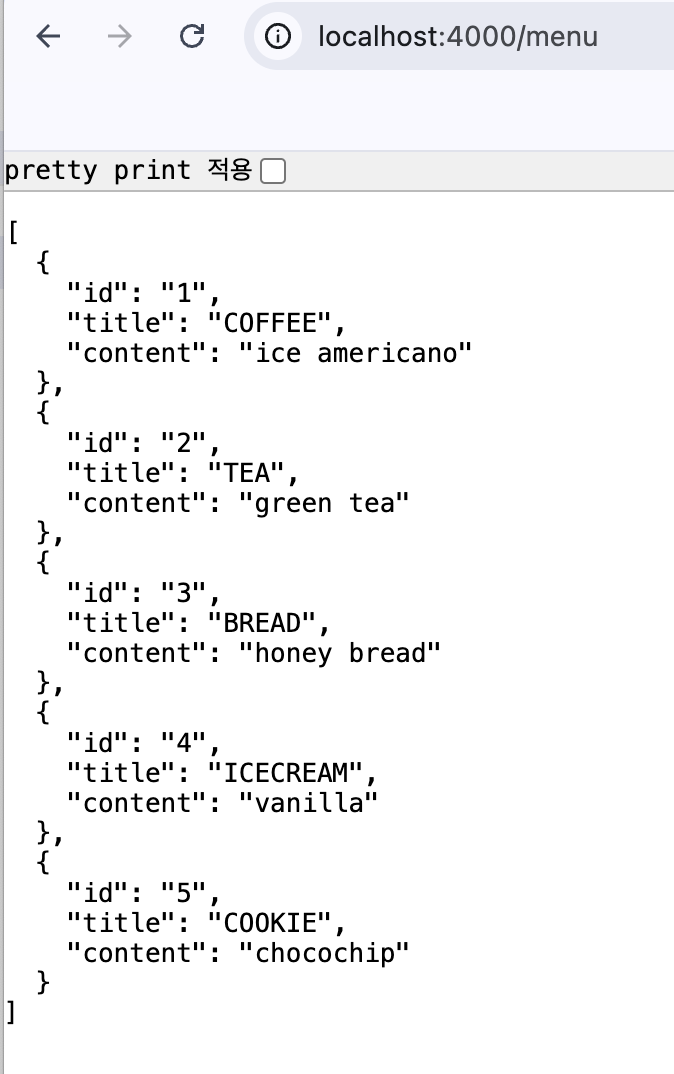 이 경우에는 MENU의 데이터가 json 파일에 담겨있기 때문에 일반 서버에서는 확인할 수 없기 때문이다.