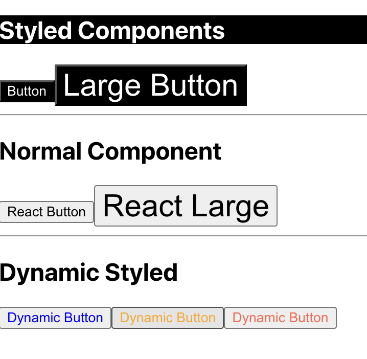 <h2 style={{backgroundColor:"black", color:"white"}}>Styled Components</h2>