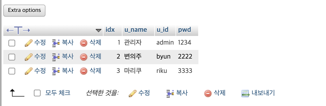 users라는 데이터 베이스 안에 있는 모든 데이터를 선택해서 sql안에 담았다는 뜻이고,