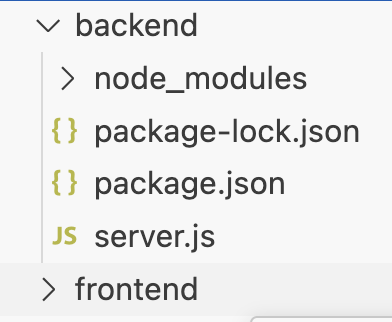 server.js 는 npm모듈을 설치하면 생기는 파일이 아니고, 프론트와 백엔드서버 연결해주는 node 서버를 만들기 위해 새로 생성한 파일이다.