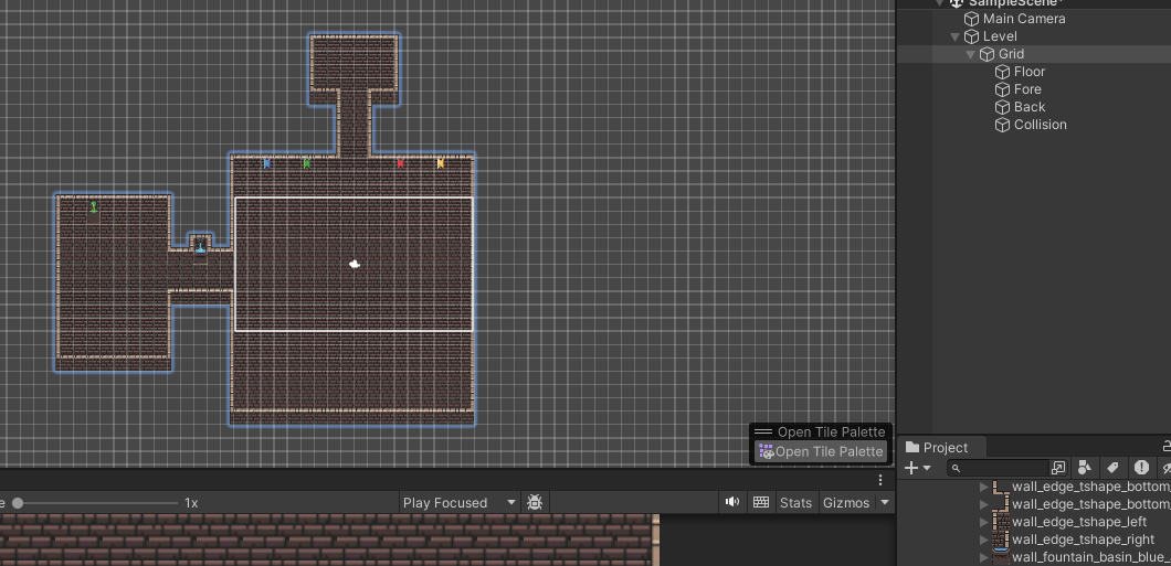 맵은 상호작용 NPC, 캐릭터 변경, 미니게임으로 이동할 포탈을 배치할 별도 공간, 이외 장식물까지 고려해서 TileMap을 이용해 만들었다.