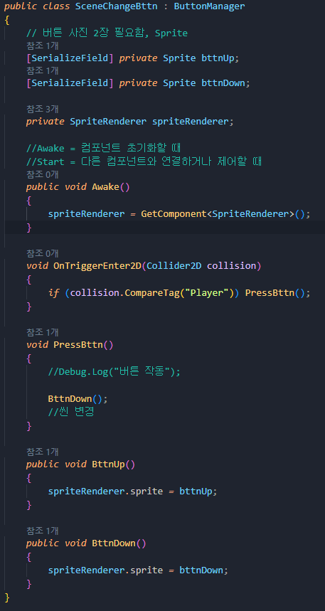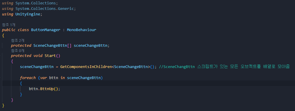 모든 버튼들을 관리할 ButtonManager. 하위 버튼 오브젝트들의 스프라이트를 배열에 담아서 저장해놓는 기능만 구현했다.