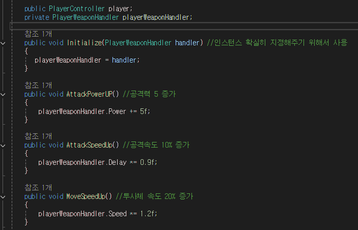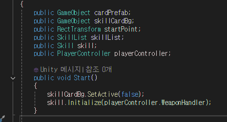 SkillManager 스크립트에서 Skill 스크립트에 playerController 하위의 WeaponHandler 인스턴스(클론)을 직접 넘겨주고