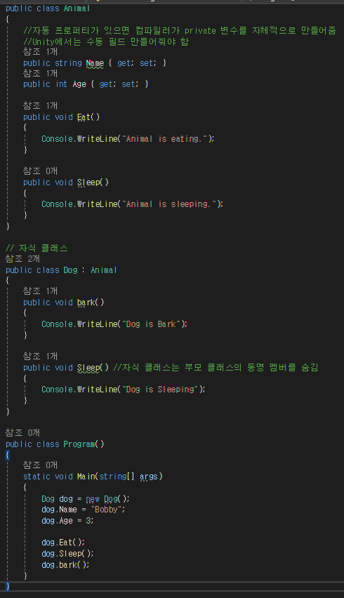 상속받은 부모 클래스의 멤버(필드, 메서드, 프로퍼티)에 접근 가능