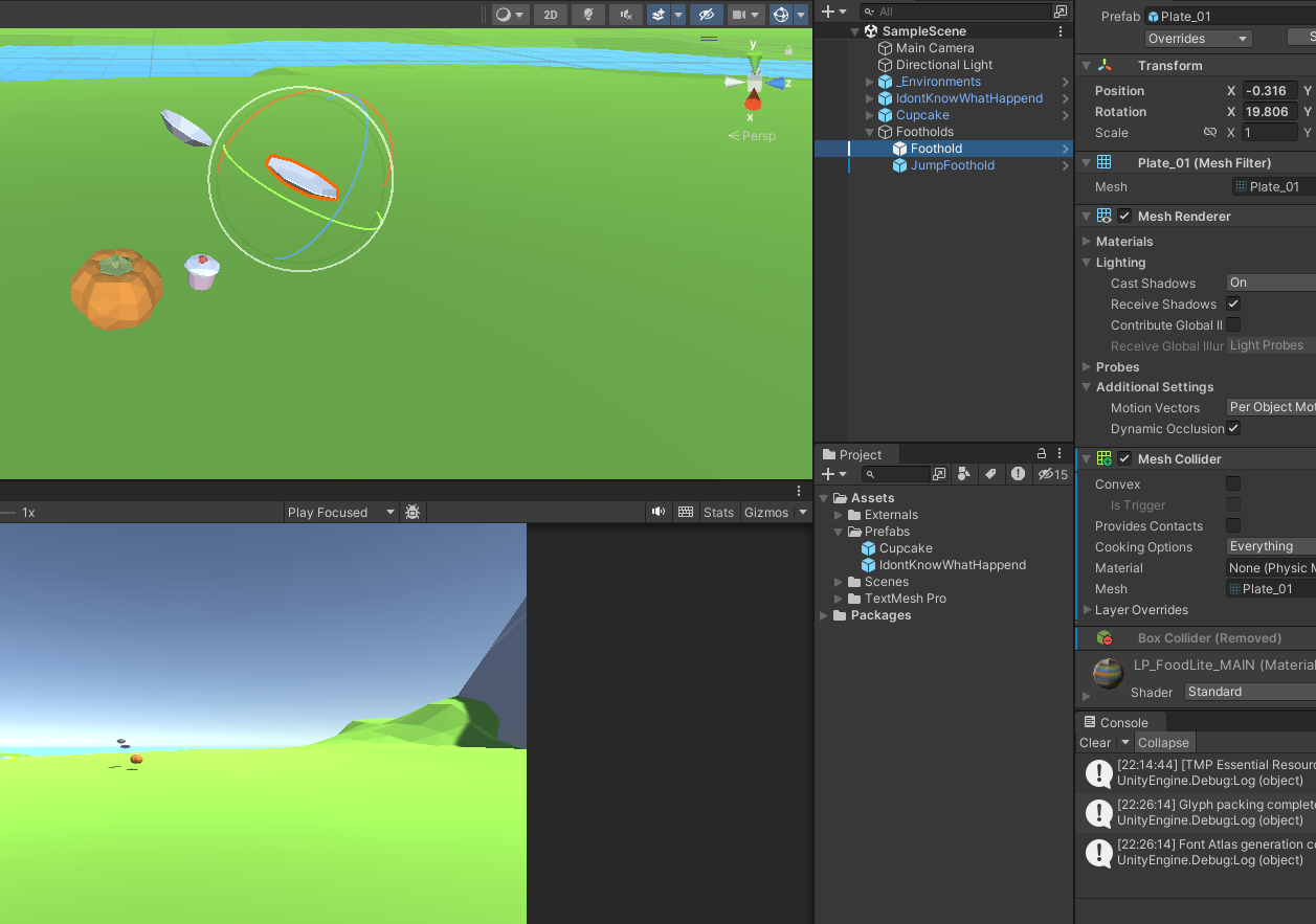 우선 기본 에셋과 TMP 한글 폰트, 게임 내에서 쓸 오브젝트를 몇 개 골라서 저장했다.
