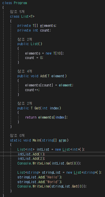 List<int> intList <= 리스트처럼 보이지만 List<T> 클래스를 인스턴스로 만든 거임. (원시적인 리스트 형태임)
