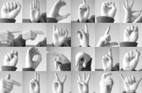 레이블의 종류는 25가지 0~24, 근데 이미지 종류는 24가지. 알파벳 j,z는 제외(동적인 움직임)