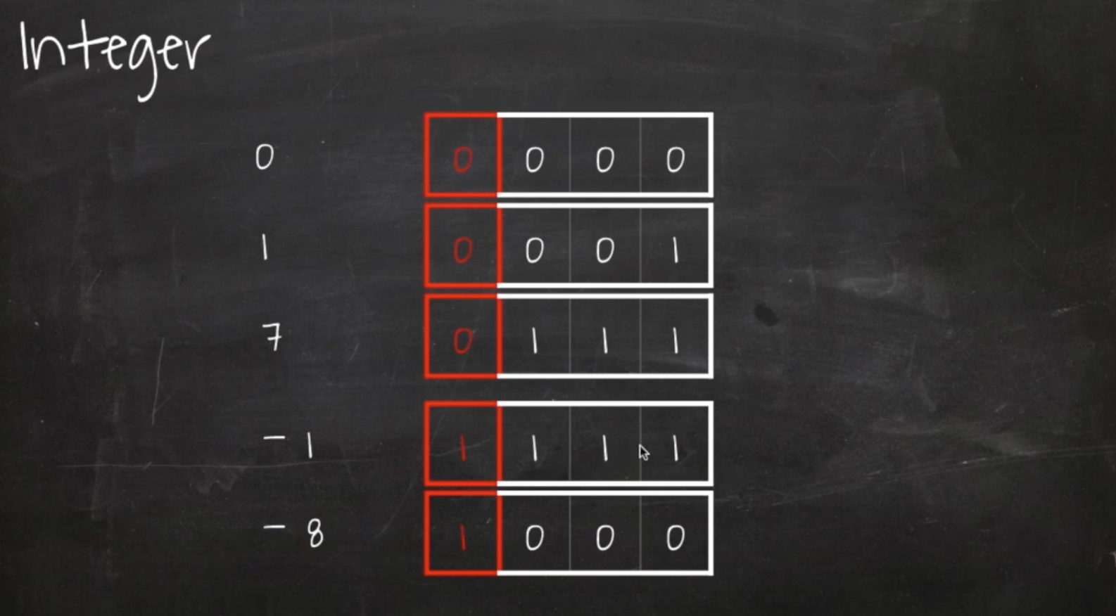 - 맨 앞 한칸은 +/- 부호로 사용함. (0일때는 양수, 1일때는 음수)