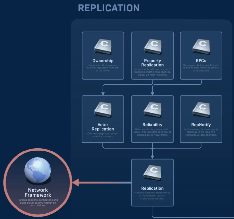 Unreal Engine에서 네트워크를 통해 객체의 속성(변수) 값을 클라이언트에 동기화하는 기능이다.
