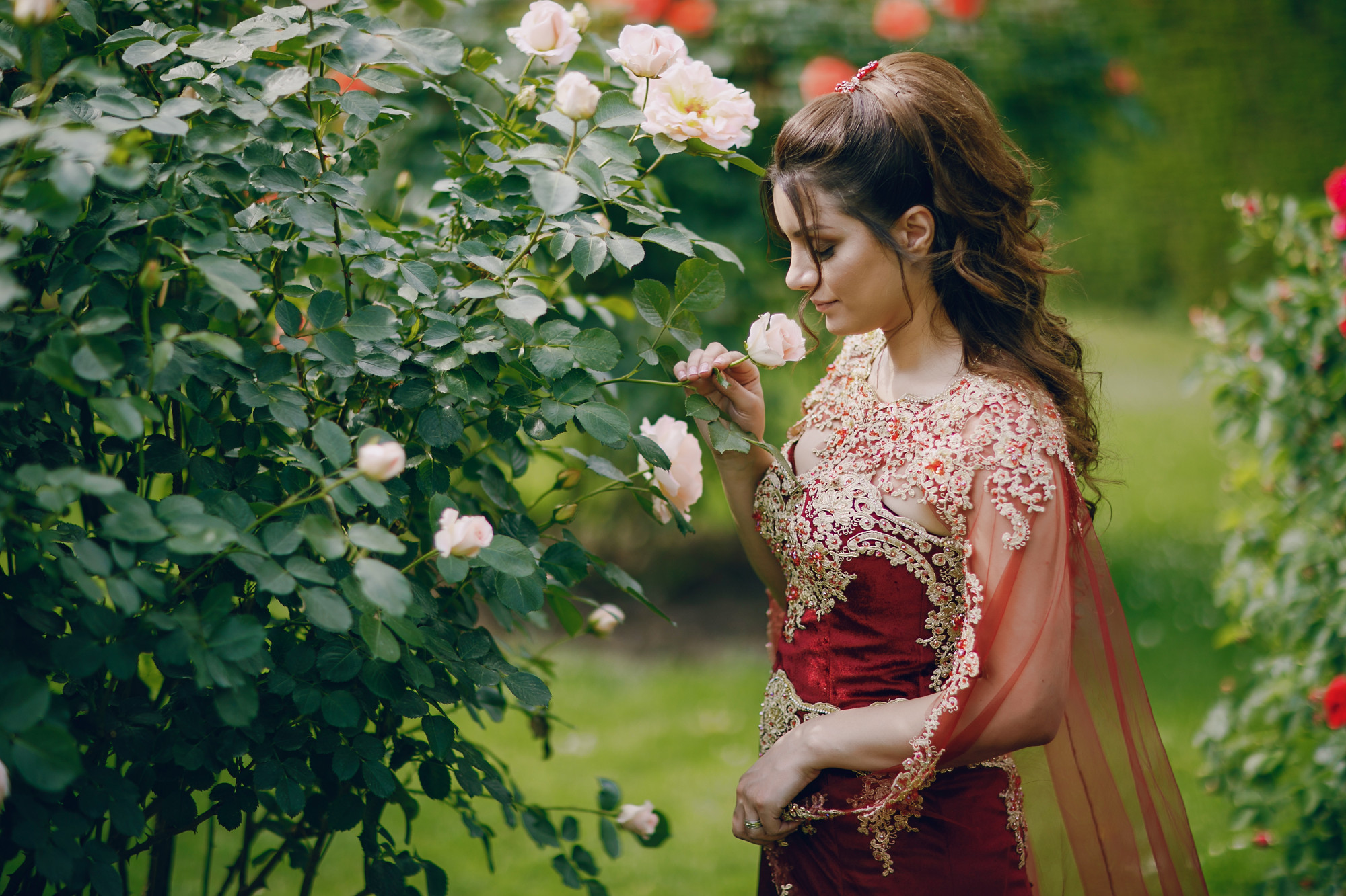 For marathon wedding events, comfort is presently a major factor. Brides are selecting lighter materials that still give elegance. Voluminous yet manageable lehengas and anarkalis are being made using layers of delicate tulle, airy organza, flowing chiffon, and feather-light silk s. Rather than thick, heavy embroidery, embellishments on these materials usually take the shape of three-dimensional or sparse floral appliqués. This offers stunningly beautiful outfits that allow for mobility and a cooler wearing experience.