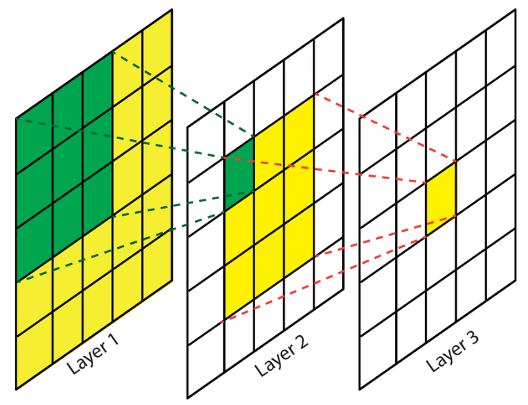 즉, 층이 깊어질수록 더 넓은 Receptive Field를 가지게 됨.