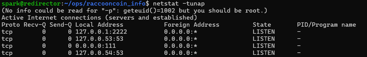 다음과 같이 plan.txt에서 언급했던 2222번 포트를 사용하는 127.0.0.1:2222가 나온다.