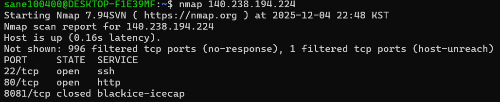 이 ip에 대해서 nmap으로 포트 스캔을 돌려보면 해당 ip에 대하여 3개의 포트가 열려있다.