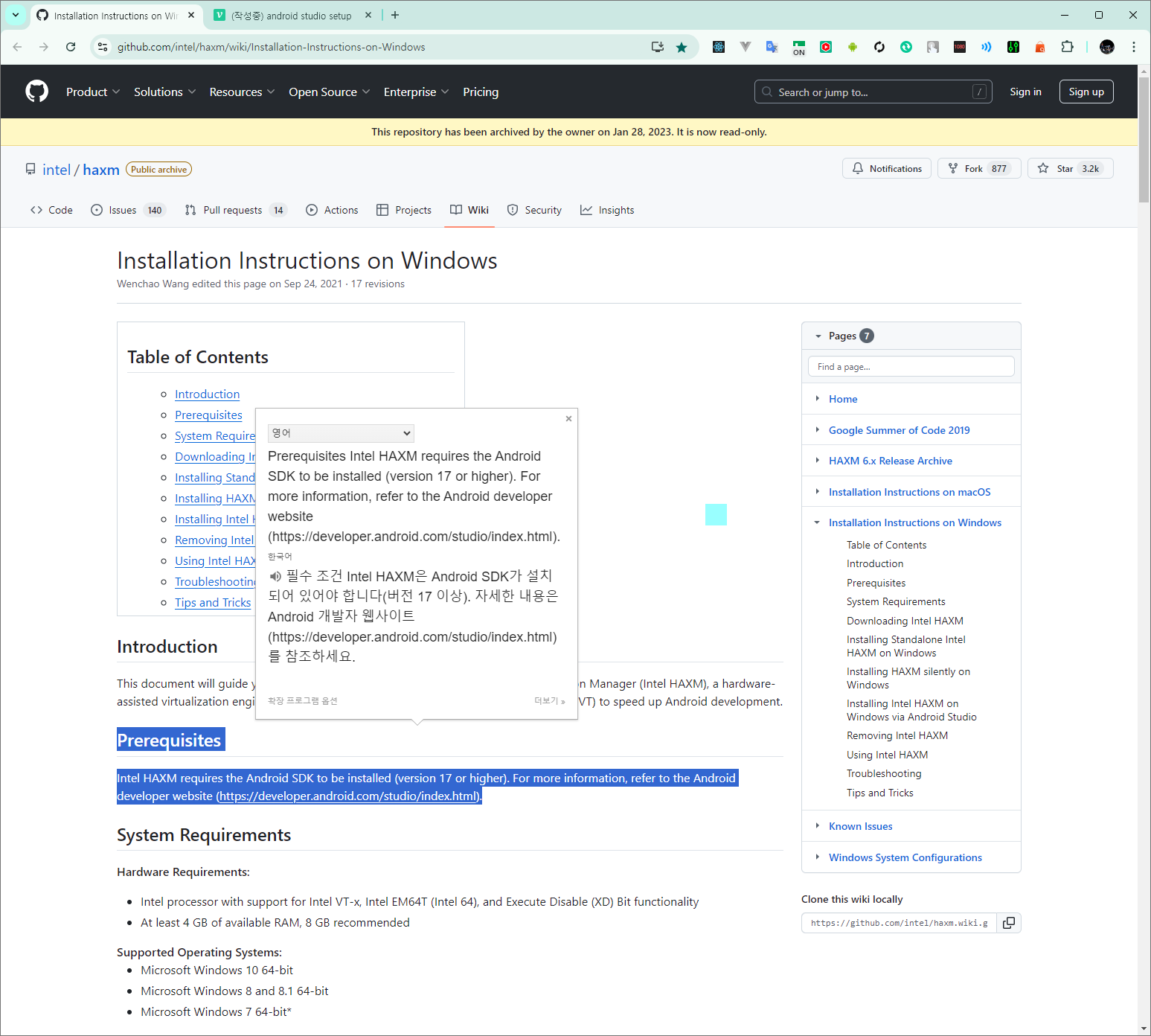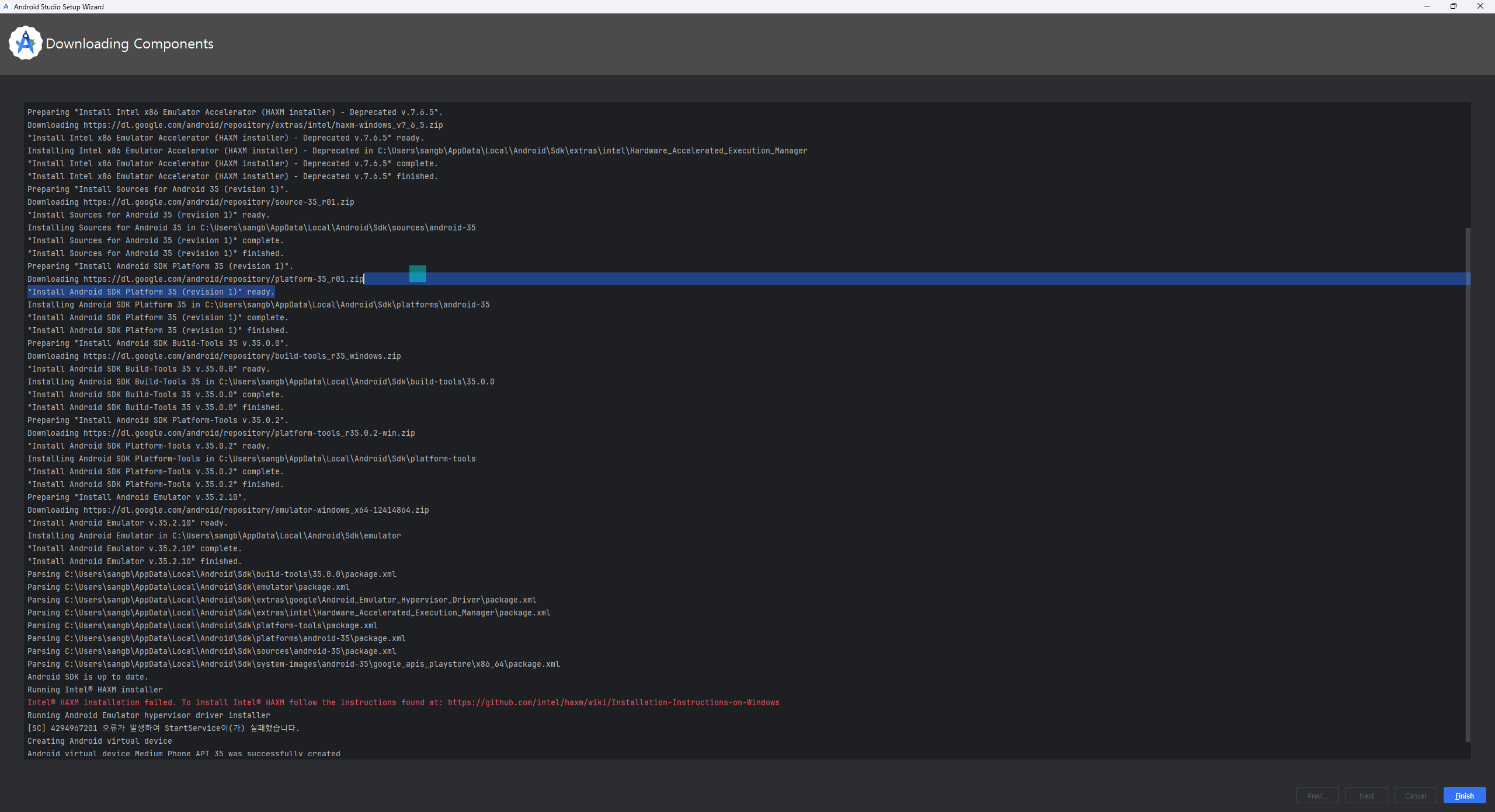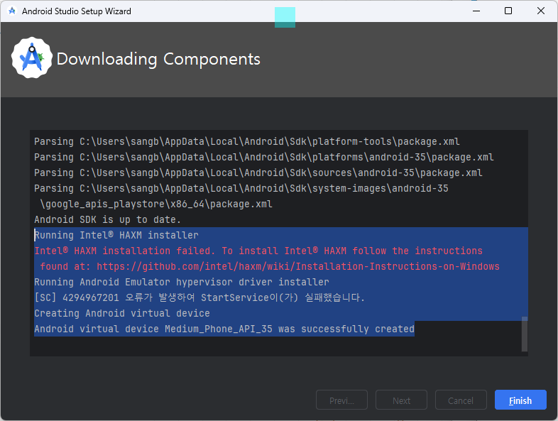 Intel® HAXM installation failed. To install Intel® HAXM follow the instructions found at: https://github.com/intel/haxm/wiki/Installation-Instructions-on-Windows