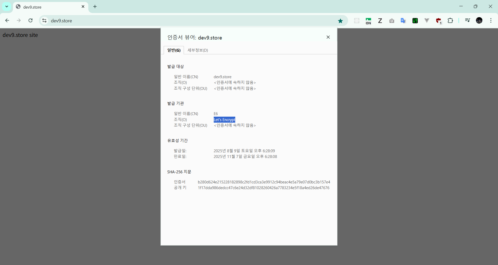 Requesting a certificate for dev9.store
