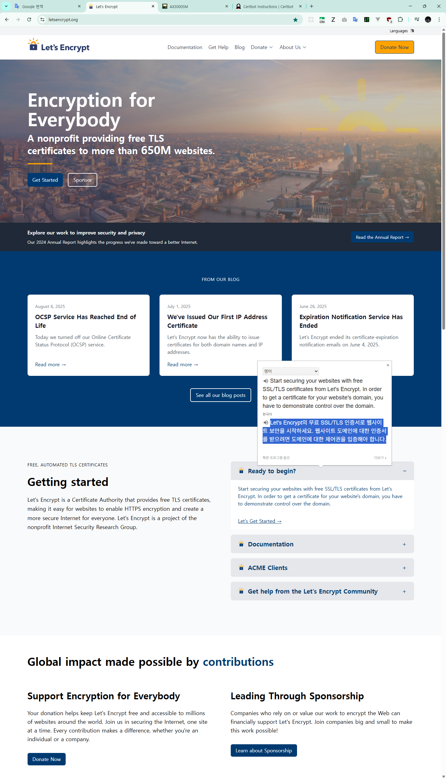 Let's Encrypt의 무료 SSL/TLS 인증서로 웹사이트 보안을 시작하세요. 웹사이트 도메인에 대한 인증서를 받으려면 도메인에 대한 제어권을 입증해야 합니다.