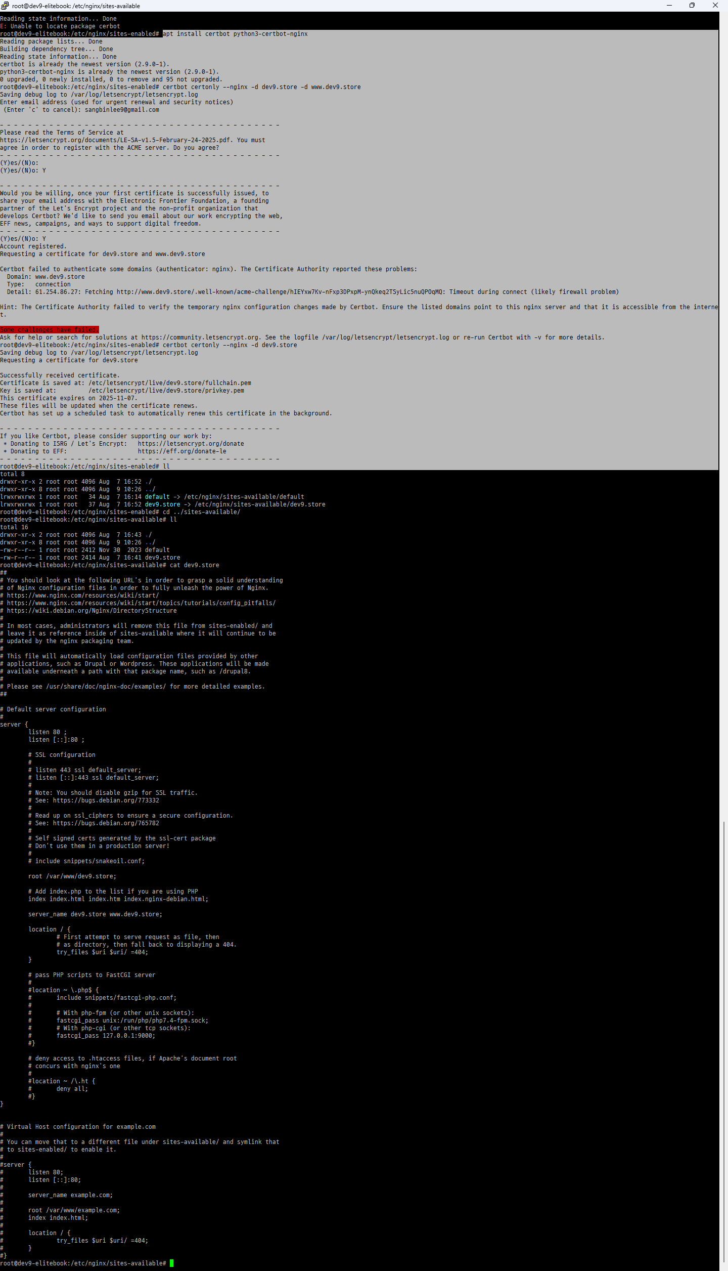 root@dev9-elitebook:/etc/nginx/sites-enabled# certbot certonly --nginx -d dev9.store