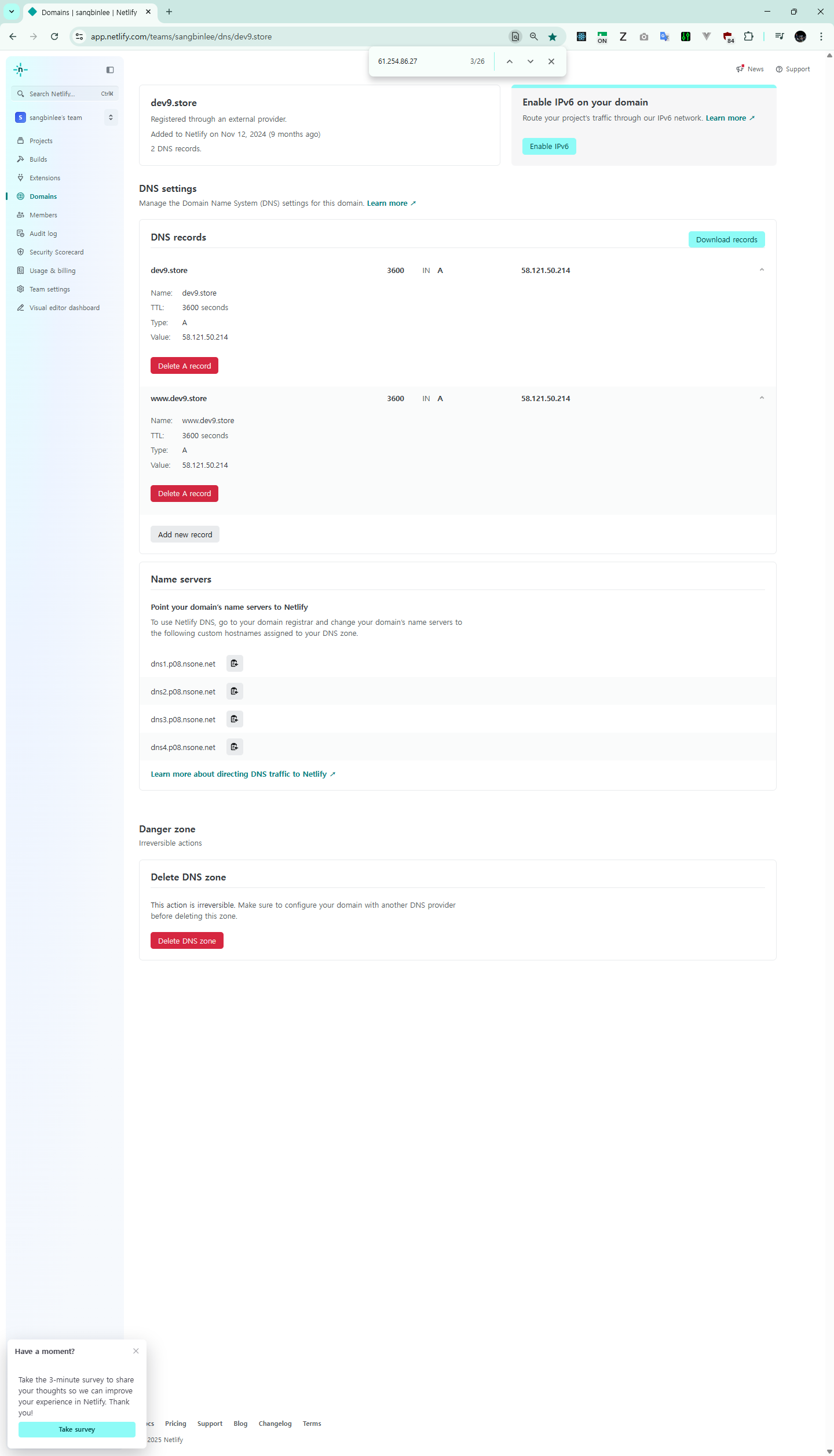 Detail: 61.254.86.27: Fetching http://www.dev9.store/.well-known/acme-challenge/hIEYxw7Kv-nFxp3DPxpM-ynQkeq2TSyLic5nuQPOqMQ: Timeout during connect (likely firewall problem)