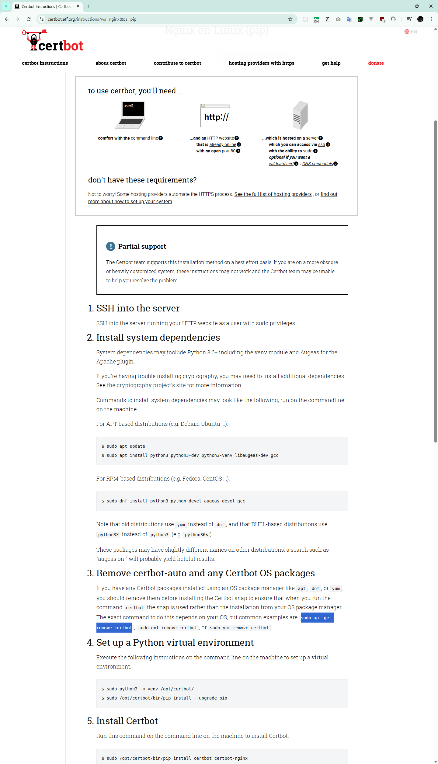 sudo /opt/certbot/bin/pip install --upgrade certbot certbot-nginx