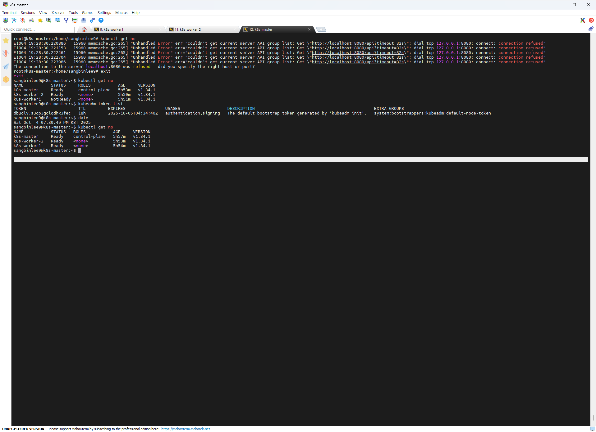 root@k8s-worker-2:/home/sangbinlee9# kubeadm join 192.168.0.6:6443 --token dbudlv.s3cp3gclqdhx3fec \