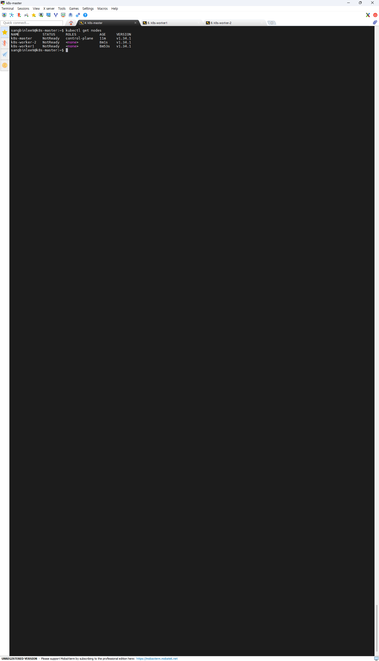 sangbinlee9@k8s-master:~$ kubectl get nodes